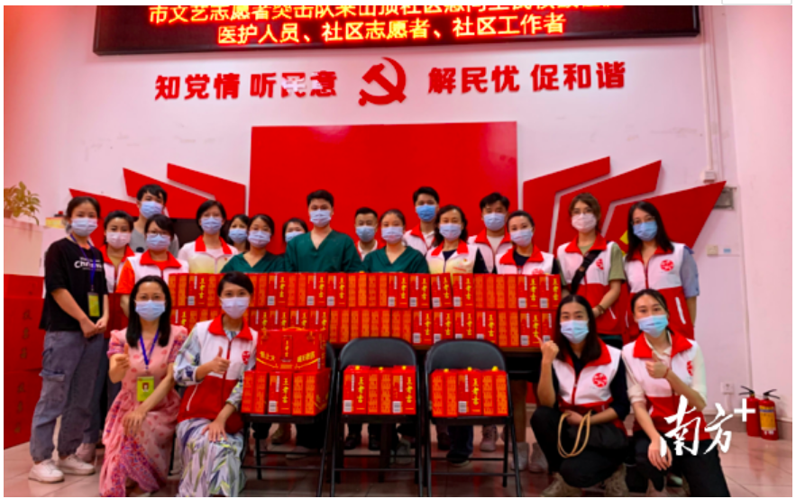中英保集团党员突击队50名党员和入党积极分子,逆行抗疫,毅然投身荔湾区中高风险区域安保值守。区文联党员突击队携手广州市文艺志愿者突击队12名队员,赶赴员村街山顶社区协助开展核酸检测,并为现场医护人员和社区工作者捐赠凉茶50箱。富力物业广东农信大厦服务中心、广州汇量网络科技有限公司等区内“两新”组织党员们在协助维持检测点秩序的同时,纷纷捐赠物资,为抗疫一线的人员送上暖心水果和矿泉水220箱。