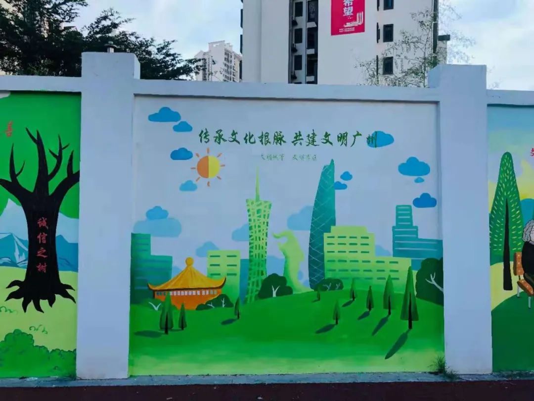 社会主义核心价值观、保护环境、爱心奉献……日前,南沙区横沥镇广兴路一面“创文墙”成了附近居民日常打卡的“网红地”,墙面颜色鲜艳、墙上内容生动形象,吸引来往的人驻足拍照、观赏。