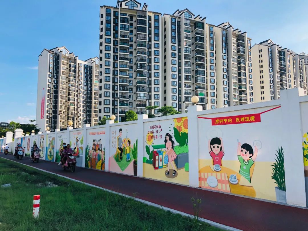 今年,结合云水雅苑至义沙八队绿道工程,横沥镇积极创新工作思路,把“痛点”变“亮点”,便有了这面“创文墙”的诞生。据介绍,该墙长180米,共有45幅画,内容涵盖了社会主义核心价值观、疫情防控、环保、奉献等十二个主题,从草稿到最终成画,用了近2个月的时间。横沥镇创文工作人员告诉记者,绘画期间,部分居民还会带着自己的小孩一起加入到绘画当中,帮着画师一起完成。