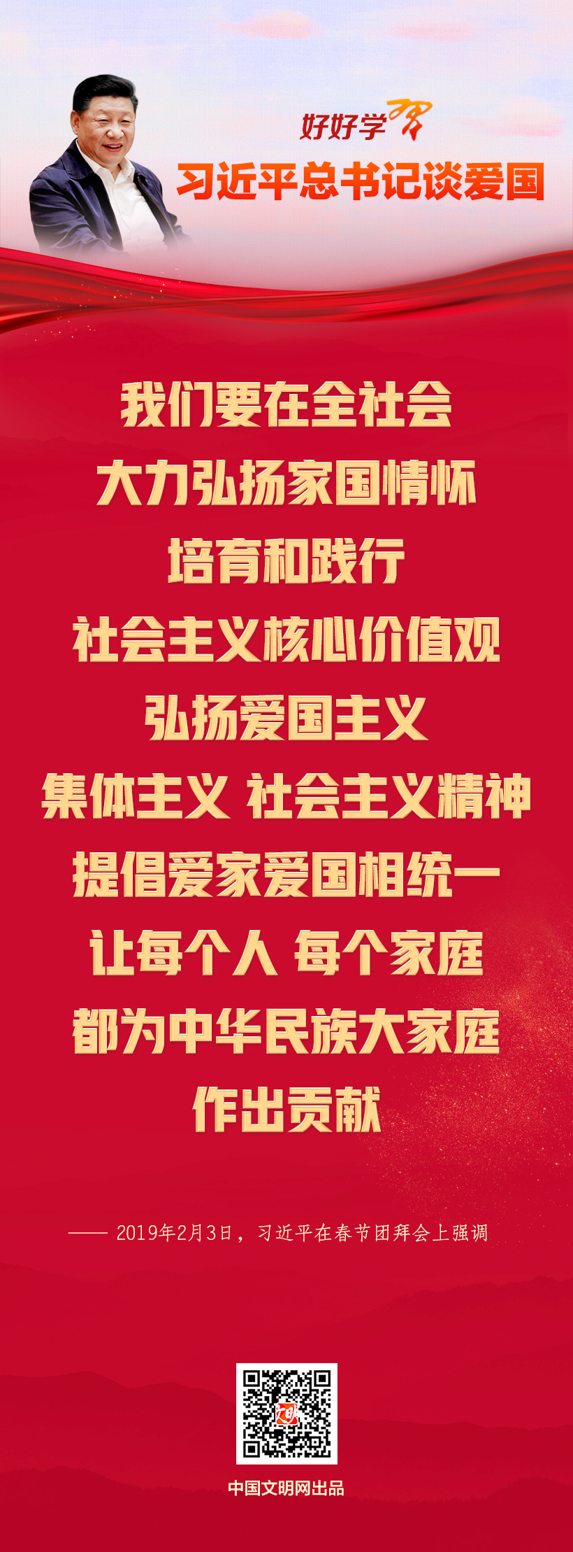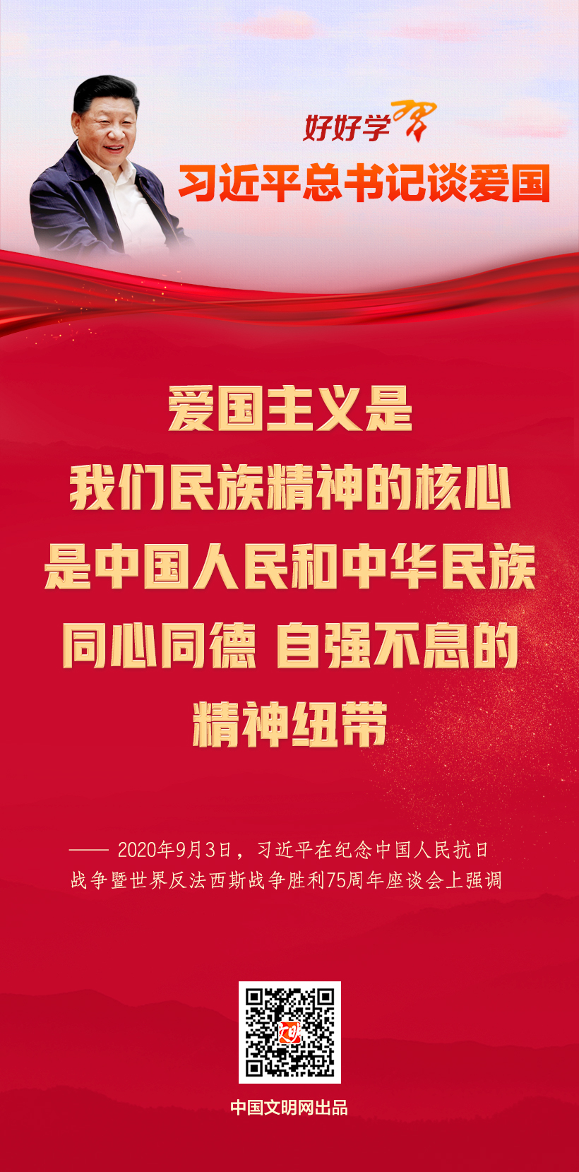 “爱国,是人世间最深层、最持久的情感,是一个人立德之源、立功之本。”在中华人民共和国成立73周年之际,让我们一起学习习近平总书记关于爱国主义的重要论述,大力弘扬爱国主义精神,凝聚成一往无前的力量,推动中华民族伟大复兴的航船乘风破浪、扬帆远航。